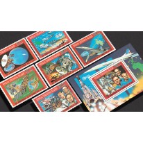 Znaczki upamiętniające 20. rocznicę pierwszego lądowania człowieka na Księżycu.