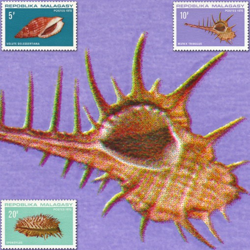 Na znaczkach przedstawiono muszle następujących zwierząt: