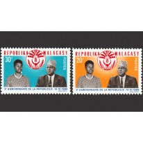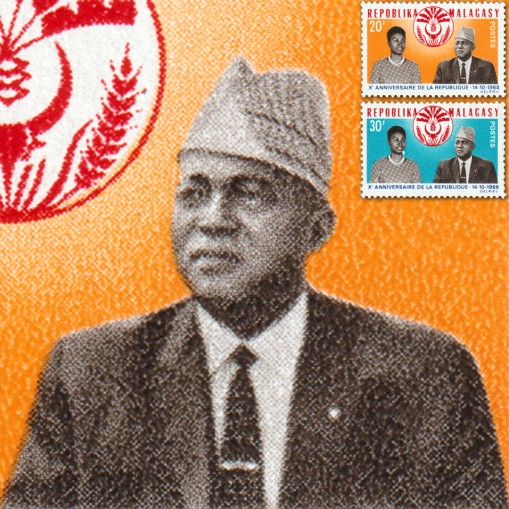 Na znaczkach przedstawiono prezydenta kraju z żoną. Madagaskar został ogłoszony terytorium zamorskim Francji 14 października 1958 roku, stając się republiką, zaś pełną niezależność od Francji uzyskał 26 czerwca 1960 roku. W chwili uzyskania niepodległości urząd prezydenta objął Philibert Tsiranana, z zawodu nauczyciel. Okres jego rządów cechowała profrancuska orientacja i względna stabilność.