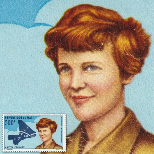 Znaczek wydany z okazji 30. rocznicy lotu Amelii Earheart nad Mali drogą Gao. Amelia Earheart była amerykańską pilotką, dziennikarką i autorką książek. Jest to pierwsza kobieta, która przeleciała nad Oceanem Atlantyckim jako pasażer (1928) i pierwsza kobieta, która jako pilot uczyniła to samotnie (1932), za co została odznaczona Zaszczytnym Krzyżem Lotniczym.