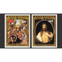 Na znaczkach przedstawiono reprodukcje następujących dzieł malarstwa: „Upadek w drodze na kalwarię” Rafaela i „Ecce Homo” Rambrandta.