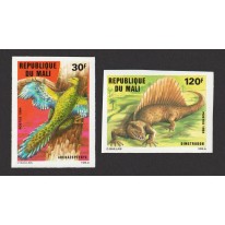 Na znaczkach widnieją zwierzęta prehistoryczne, kolejno: