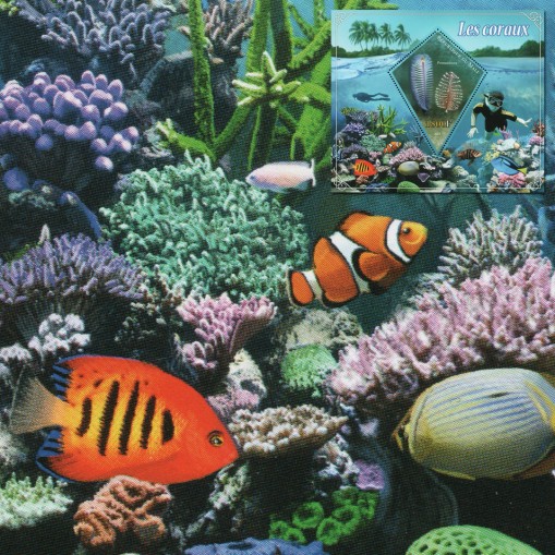 Nieautoryzowana seria w bloku, na znaczkach których widnieją koralowce.
