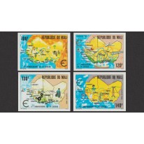 Na znaczkach widnieje mapa Mali oraz, kolejno, symbole rolnictwa, transportu, przemysłu i energii.