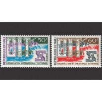 Znaczek upamiętniający 50-lecie Międzynarodowej Organizacji Pracy.