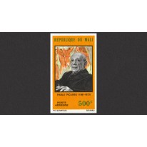 Znaczek upamiętniający śmierć Pabla Picasso (1881-1973). Na znaczku przedstawiono portret artysty.