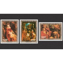 Na znaczkach przedstawiono fragmenty dzieła Petera Paula Rubensa przedstawiającego pokłon trzech króli.