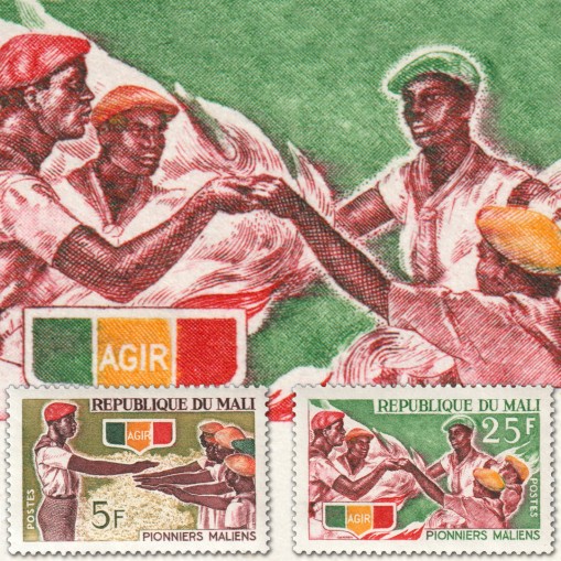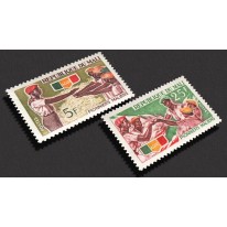 Na znaczkach przedstawiono ceremonię inicjacyjną i tańczących harcerzy.