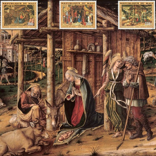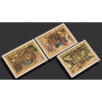 Znaczki wydane na Boże Narodzenie. Widnieją na nich reprodukcje słynnych dzieł malarstwa, kolejno: