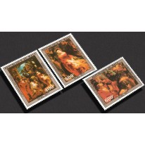 Znaczki wydane na Boże Narodzenie. Widnieją na nich reprodukcje fragmentów obrazu „Pokłon Trzech Króli” Petera Paula Rubensa z 1624 roku.