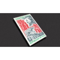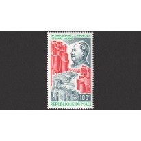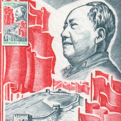 Znaczek upamiętniający 25-lecie Chińskiej Republiki Ludowej. Na znaczku przedstawiono portret Mao Zedonga oraz Chiński Mur i flagi.