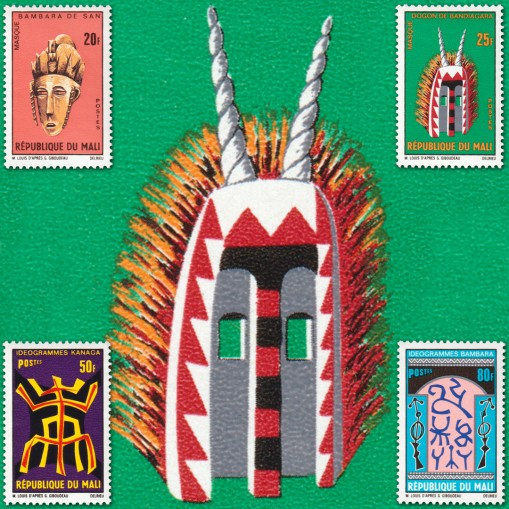 Na znaczkach przedstawiono maski i ideogramy plemion afrykańskich z obszaru Mali. Są to kolejno maski ludu Bambara i Dogonów oraz ideogramy ludów Kanaga i Bambara.