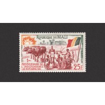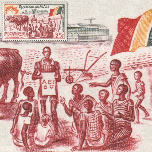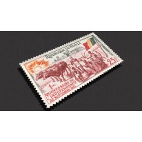 Znaczek upamiętniający pierwszą rocznicę uzyskania niepodległości. Na znaczku przedstawiono rdzennych mieszkańców uczących się pisać i czytać.