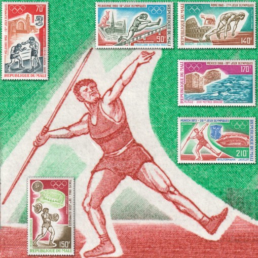 Na znaczkach przedstawiono najlepszych sportowców z poszczególnych krajów. Są to kolejno: