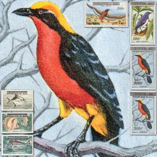 Rzadki zestaw znaczków z 1960 roku - dwie kompletne serie: z rybami i ptakami. Są to poprzednio wydane znaczki z przedrukami nazwy kraju na “REPUBLIQUE DU MALI” i w jednym przypadku z przedrukiem nominału (znaczek 300F).