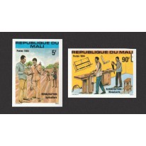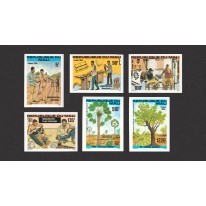Na znaczkach przedstawiono tradycyjne zajęcia rolnicze i rzemieślnicze na terenach wiejskich (uprawa roli, stolarstwo, tkactwo i kowalstwo) oraz drzewa (winodań wachlarzowata i masłosz Parka).