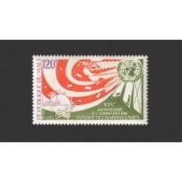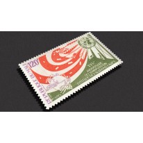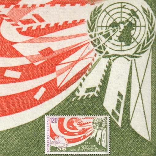 Znaczek upamiętniający 25-lecie usług pocztowych Organizacji Narodów Zjednoczonych ONZ.