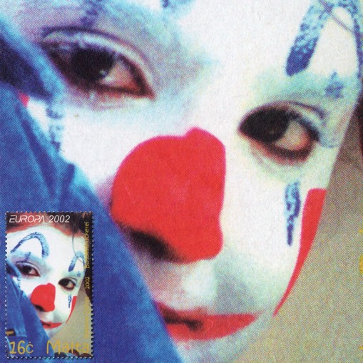 Znaczek z emisji EUROPA CEPT z 2002 roku, której tematem przewodnim dla wszystkich partycypujących krajów był cyrk.
