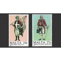 Na znaczkach widnieją mundury następujących maltańskich stopni wojskowych: