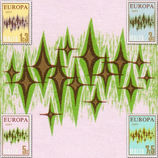 Projektantem emisji EUROPA z 1972 roku był artysta fiński Paavo Huovinen, zaś dizajn to znana filatelistom zorza polarna (Aurora borealis) - każdy przebłysk reprezentuje kraj członkowski wspólnej Europy. Dla ciekawości, Aurora (pol. jutrzenka, zorza) była w mitologii rzymskiej boginią zorzy porannej, brzasku i świtu (poranku). Była utożsamiana z grecką Eos.