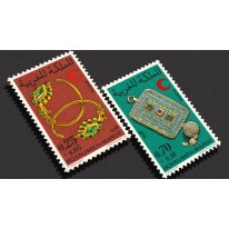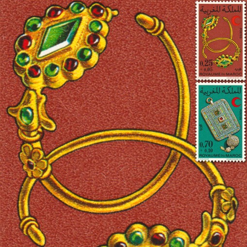 Na znaczkach przedstawiono tradycyjną biżuterię marokańską - bransoletki i wisiorek.