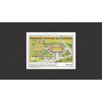 Na znaczku przedstawiono widok z lotu ptaka na wioskę olimpijską w Nawakszucie, stolicy Mauretanii.