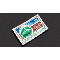 Na znaczku widnieje alegoryczne logo konferencji: orzeł i półksiężyc na tle miasta Nawakszut.