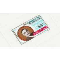 Znaczek upamiętniający pierwszą rocznicę śmierci prezydenta Egiptu Gamal Abd el-Nassera (1918-1970). Na znaczku widnieje jego portret na złotym tle, co widać lepiej pod kątem do światła.