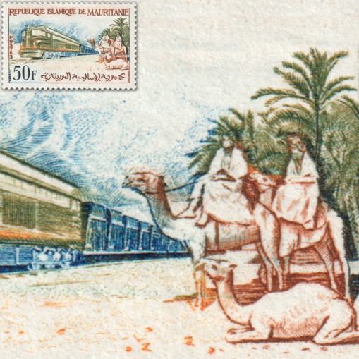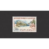 Na znaczku widnieje pociąg wiozący rudę żelaza z Zouerte do Port Etienne.