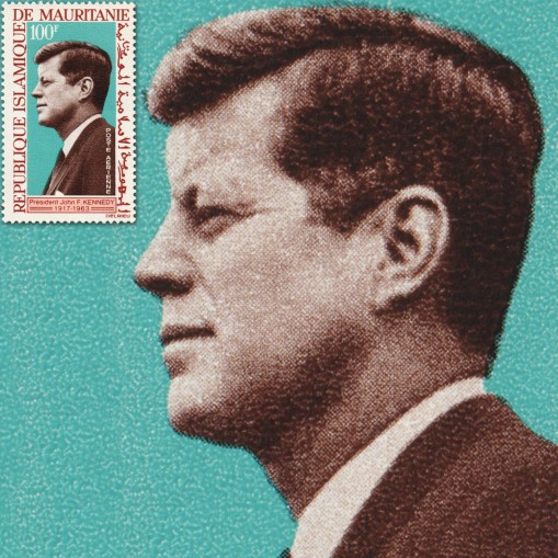 Znaczek upamiętniający pierwszą rocznicę zamachu na prezydenta Johna Fitzgeralda Kennedy’ego (1917-1963).