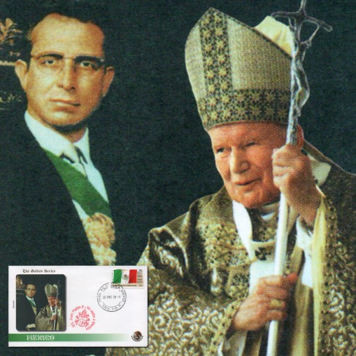 Pojedyncza koperta okolicznościowa celebrująca wizytę papieża Jana Pawła II w Meksyku podczas jego podróży do Meksyku i Stanów Zjednoczonych w dniach 22. - 28. stycznia 1999 roku.