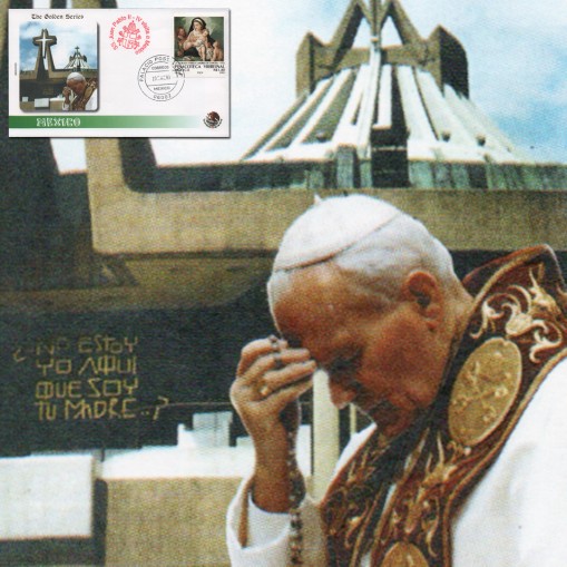 Pojedyncza koperta okolicznościowa celebrująca wizytę papieża Jana Pawła II w Meksyku podczas jego podróży do Meksyku i Stanów Zjednoczonych w dniach 22. - 28. stycznia 1999 roku.