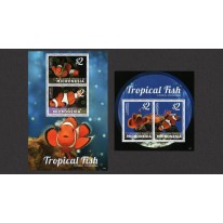 Seria w dwóch arkuszach i dwa bloki, na znaczkach których widnieją następujące gatunki ryb: