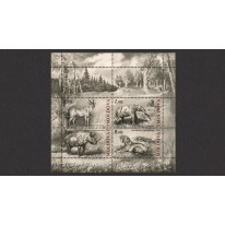 Seria w bloku, na której widnieją następujące gatunki prehistorycznej fauny: