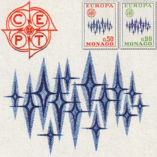 Projektantem emisji EUROPA z 1972 roku był artysta fiński Paavo Huovinen, zaś dizajn to znana filatelistom zorza polarna (Aurora borealis) - każdy przebłysk reprezentuje kraj członkowski wspólnej Europy. Dla ciekawości, Aurora (pol. jutrzenka, zorza) była w mitologii rzymskiej boginią zorzy porannej, brzasku i świtu (poranku). Była utożsamiana z grecką Eos.