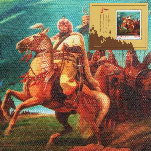 Znaczek w bloku upamiętniający 800-lecie Mongolii.