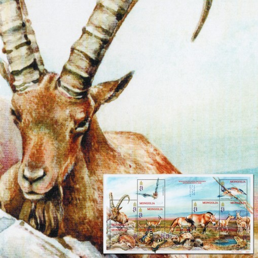 Seria w arkuszu, na znaczkach której widnieją następujące gatunki zwierząt zamieszkujące stepy Mongolii: