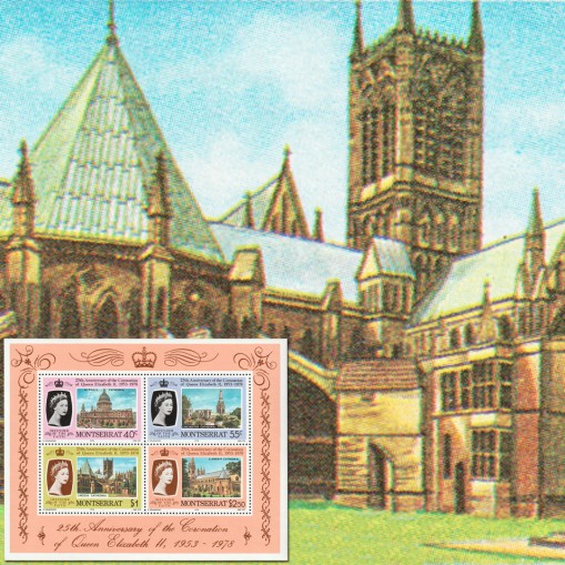 Znaczki w bloku upamiętniające 25. rocznicę wstąpienia na tron królowej Elżbiety II.