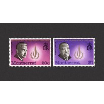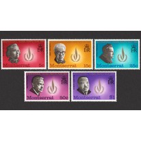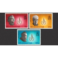 Na znaczkach widnieje logo Roku Praw Człowieka (płomień otoczony wieńcem laurowym) oraz wybitne osobistości, kolejno: