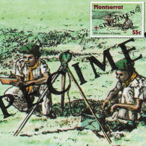 Znaczek z serii upamiętniającej 50. rocznicę powstania ruchu skautowego na Montserrat.