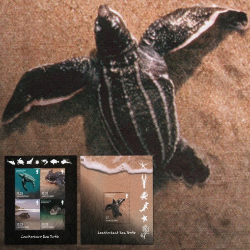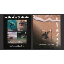 Seria w arkuszu i blok, na znaczkach których widnieje żółw skórzasty.