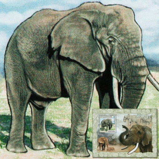 Znaczek w bloku, na którym widnieje słoń afrykański.