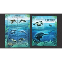 Seria w arkuszu i blok, na znaczkach których widnieją następujące gatunki delfinów: