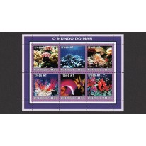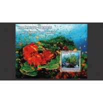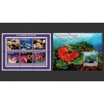 Seria w arkuszu i blok, na znaczkach których widnieją różne gatunki koralowców.