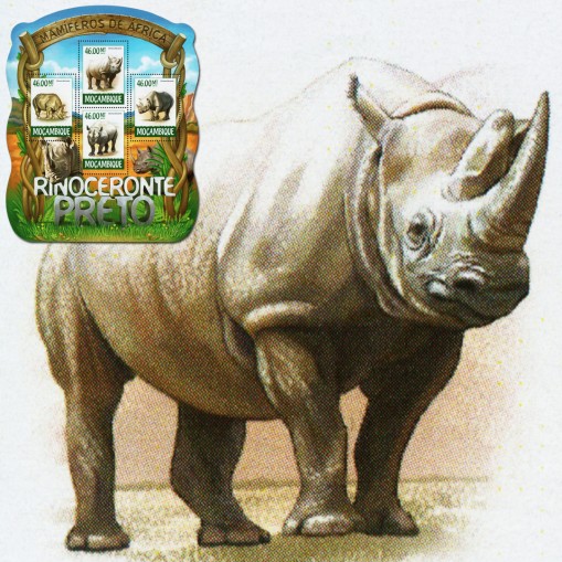 Seria w bloku, na znaczkach której widnieje nosorożec czarny.