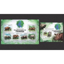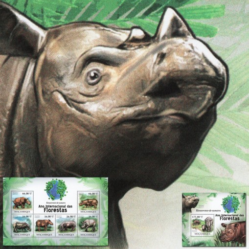 Seria w arkuszu i blok, na znaczkach których widnieje nosorożec sumatrzański.