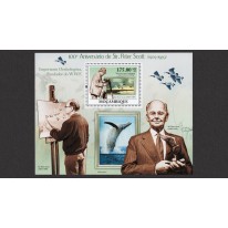 Znaczek w bloku upamiętniający dwusetną rocznicę urodzin Sir Petera Scotta, brytyjskiego ornitologa, działacza na rzecz ochrony przyrody, malarza, oficera Royal Navy, prezentera telewizyjnego, sportowca i jednego z założycieli WWF.