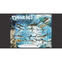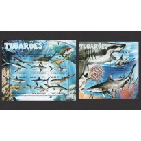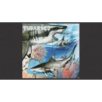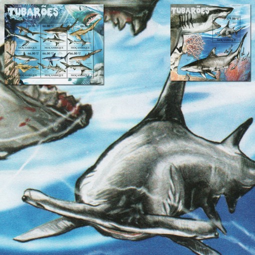 Seria w arkuszu i blok, na znaczkach których widnieją następujące gatunki rekinów: