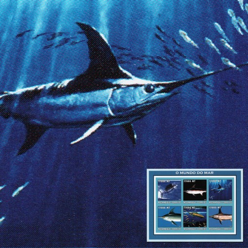 Seria w arkuszu, na znaczkach której widnieją marliny, ryby z rodziny żaglicowatych.