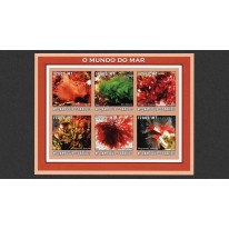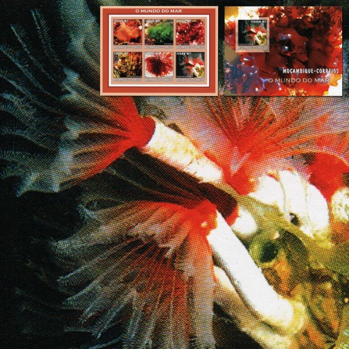 Seria w arkuszu i blok, na znaczkach których widnieją różne gatunki wodorostów, a także wieloszczet Filogranella elatensis.